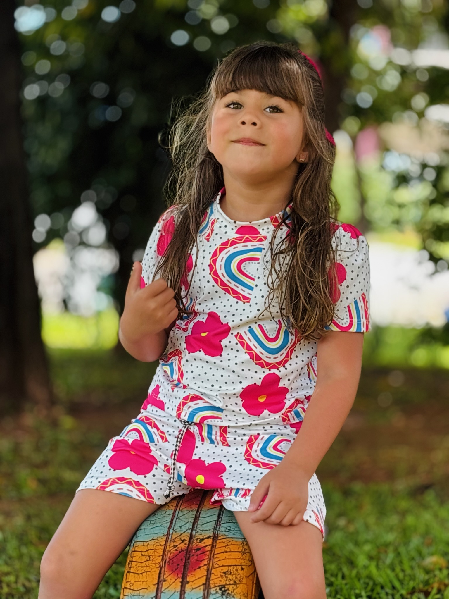 Conjuntinho em malha composto de blusa e short. Com estampas lindas e digitais! Malha super leve e fresquinha!
