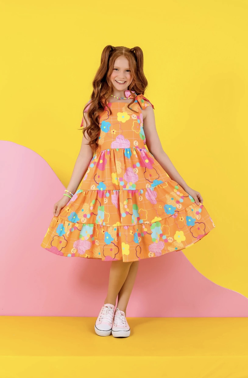 Encantador, delicado e cheio de charme! Possui um design leve e moderno, com modelagem confortável que garante liberdade de movimento para as pequenas. O destaque da peça fica por conta da abertura nas costas, que traz um toque especial e sofisticado ao visual, além de facilitar o vestir. A saia com caimento fluido deixa o look ainda mais gracioso, ideal para acompanhar diversos momentos do dia.